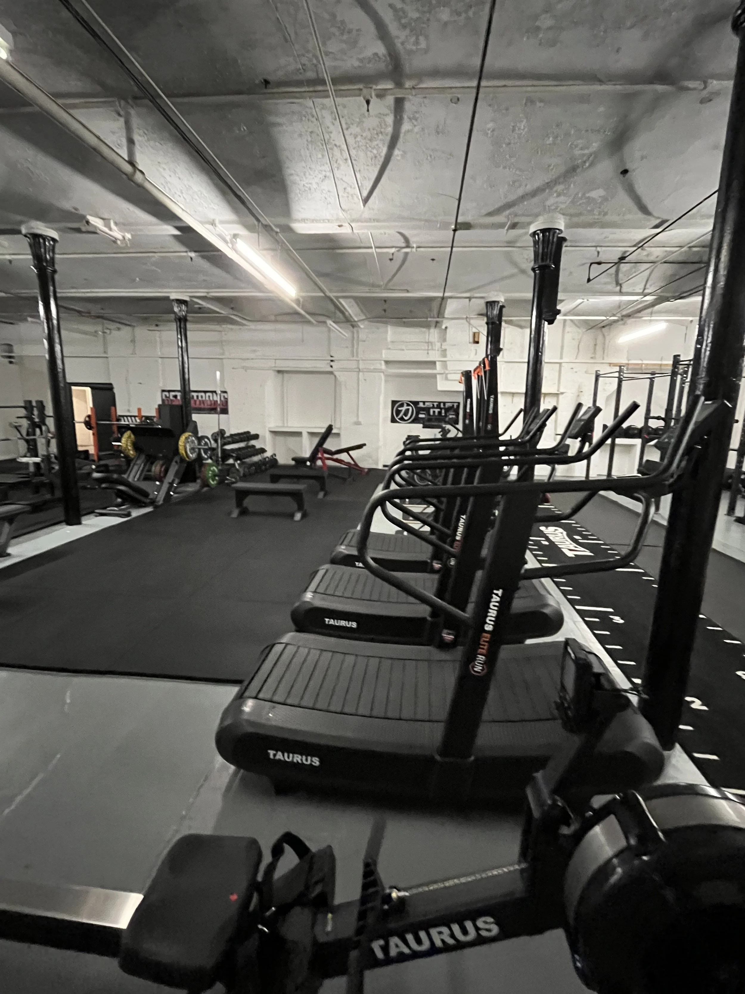 The Gym its self is loaded with multiple racks barbells benches and state of the art cardio machines.